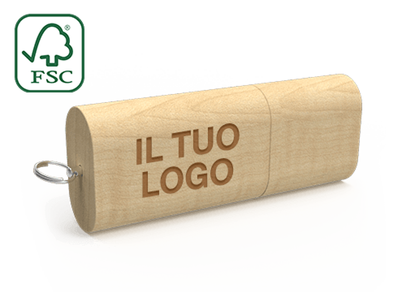 Con la sua scocca in legno d'Acero certificato FSC®, la Nature USB è il connubio perfetto tra moderna tecnologia e design sofisticato. Questa chiavetta in legno è ideale se stai cercando un regalo promozionale levigato al tocco e di grande impatto visivo per il tuo brand.