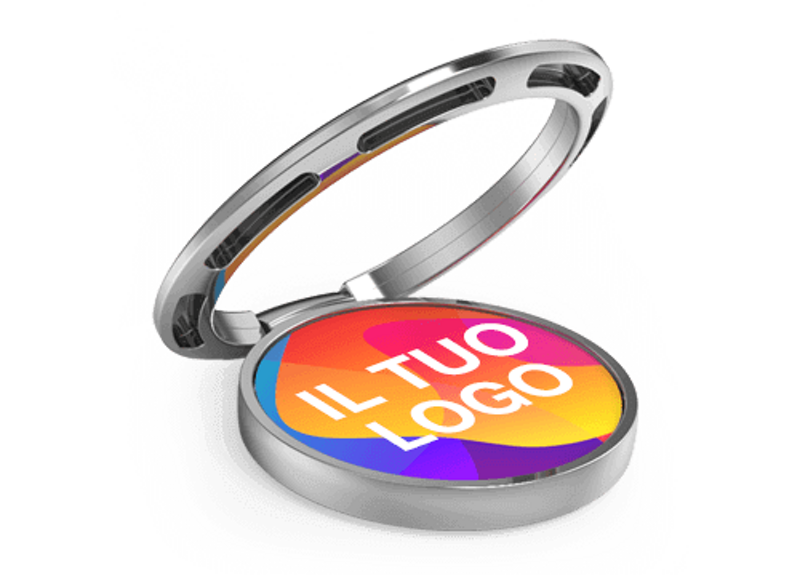 Il nostro Anello porta cellulare Hoop presenta una splendida finitura in argento ed un'ampia area di stampa, pronta per essere personalizzata con il logo, l'immagine, lo slogan ed altro. L'adesivo posto sul retro ed il design super sottile significano che Hoop è compatibile con tutti i principali smartphone. Il modello Hoop dispone anche di un pratico cavalletto, perfetto per guardare video sul tuo telefonino. Un modello molto utilizzato per Conferenze, Eventi e regali aziendali.