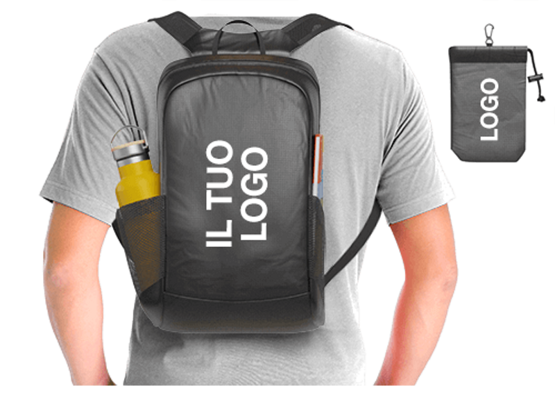Lo zaino Trip è un fantastico modello ricco di funzioni e pronto per essere personalizzato con il tuo logo. Realizzato in poliestere 210T resistente all'acqua, il prodotto Trip ha una capacità di carico di 3 kg ed un'ampia capacità di volume pari a 15 litri. Lo zaino Trip dispone anche di 2 tasche laterali, uno scomparto principale con cerniera e viene fornito anche con una pratica custodia per quando si comprime lo zaino e si desidera richiuderlo ed anche la custodia dispone anche di un'area di stampa per la personalizzazione de logo.